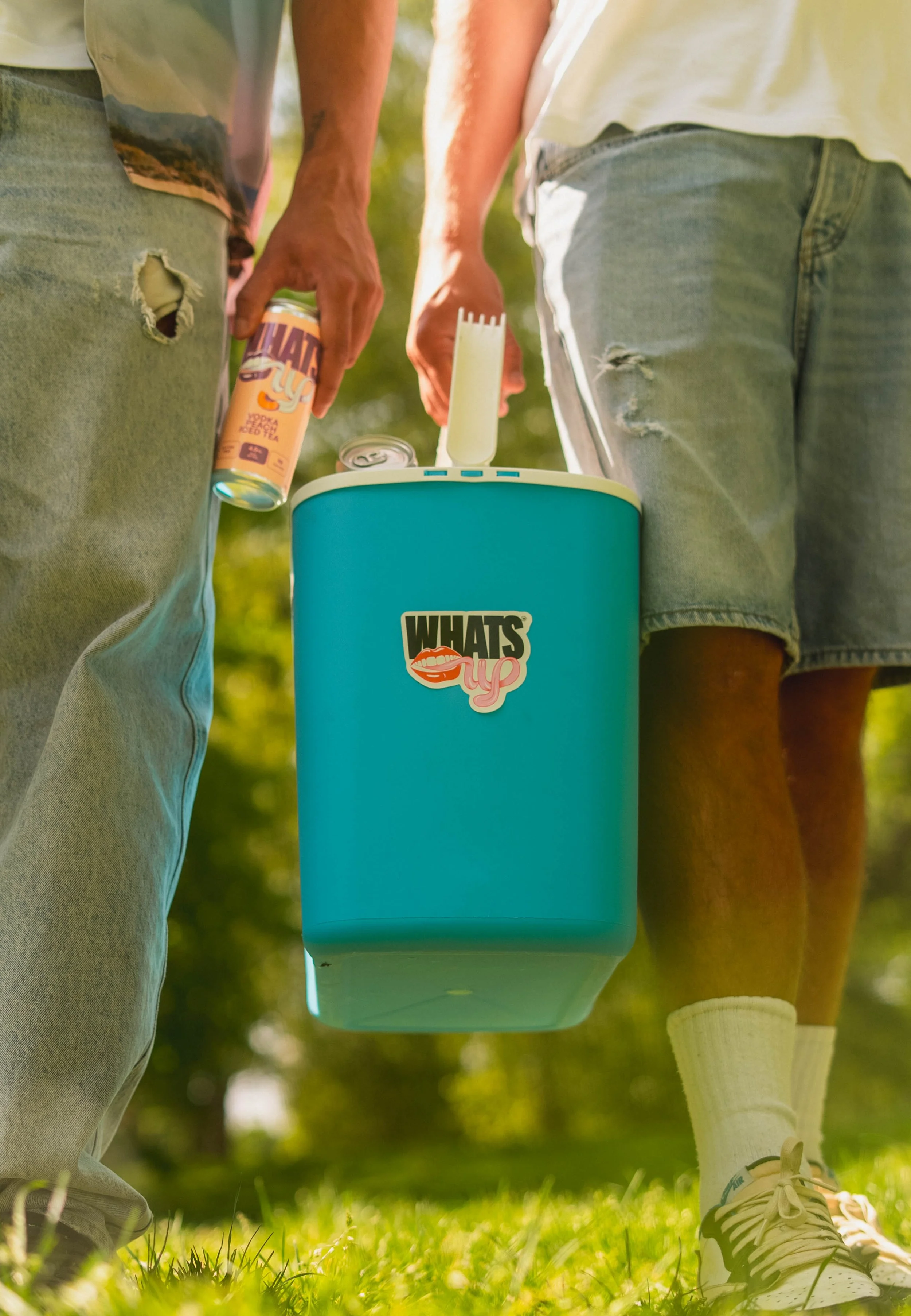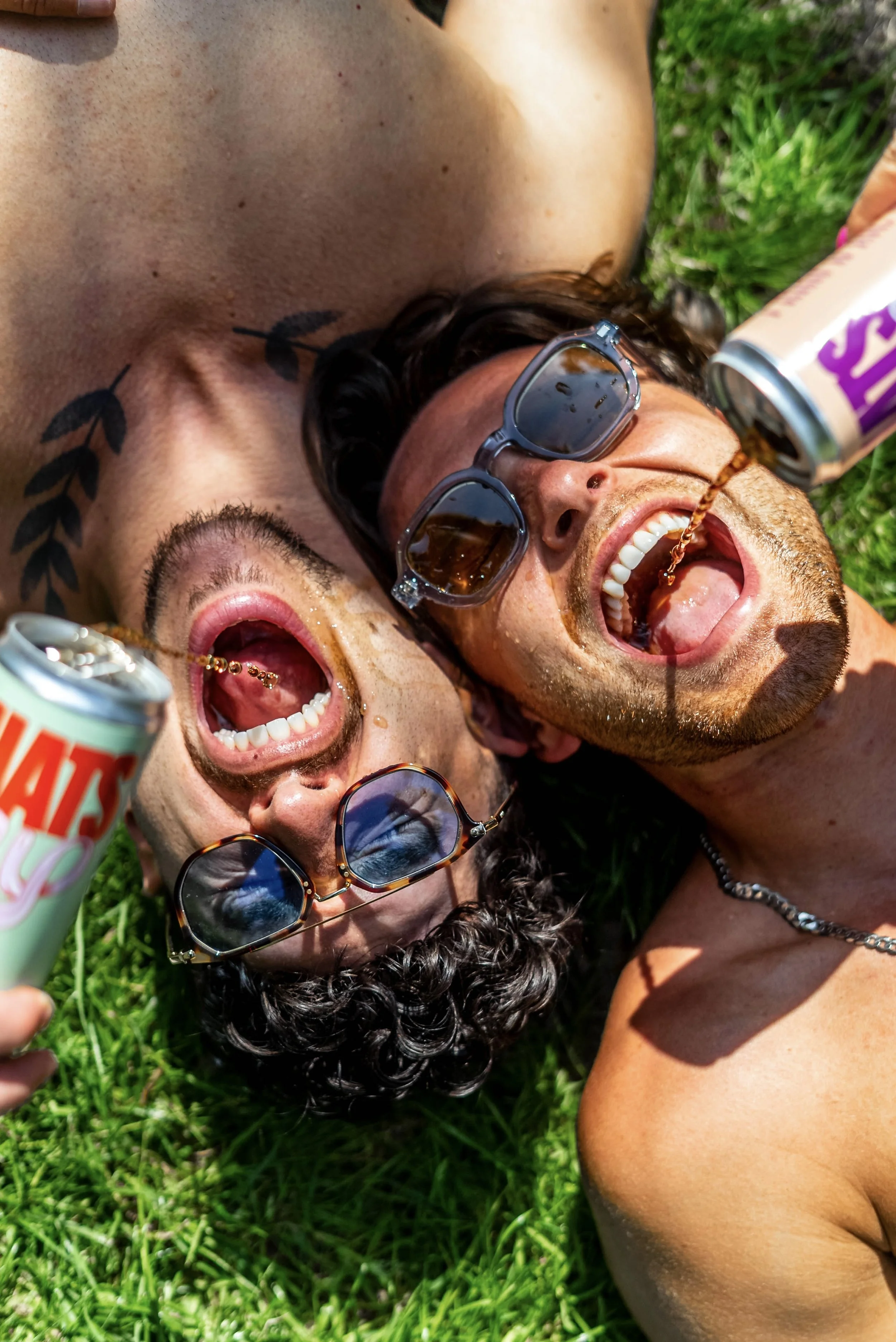 The brand inspired a photoshoot like now other, taken in the open air, full-view (you’ll see why this was risky later down the scroll) and with a prop or two. But mostly, the can gave the energy, mirroring Casey’s and Seb’s own inner recklessness, giving us a suite of images that hit the brand personality nail right on the head. Big vibes, no cares, all the fun.
